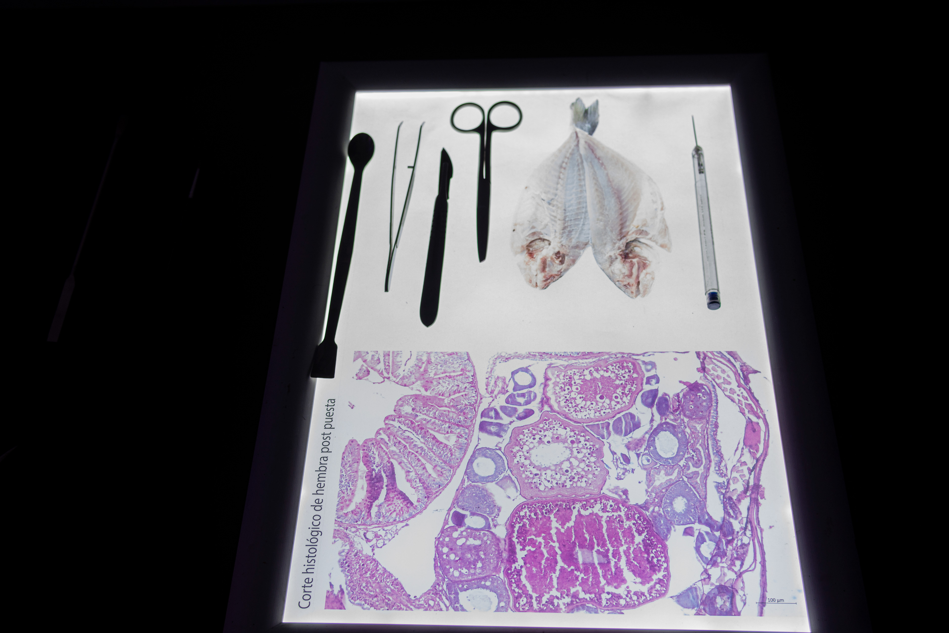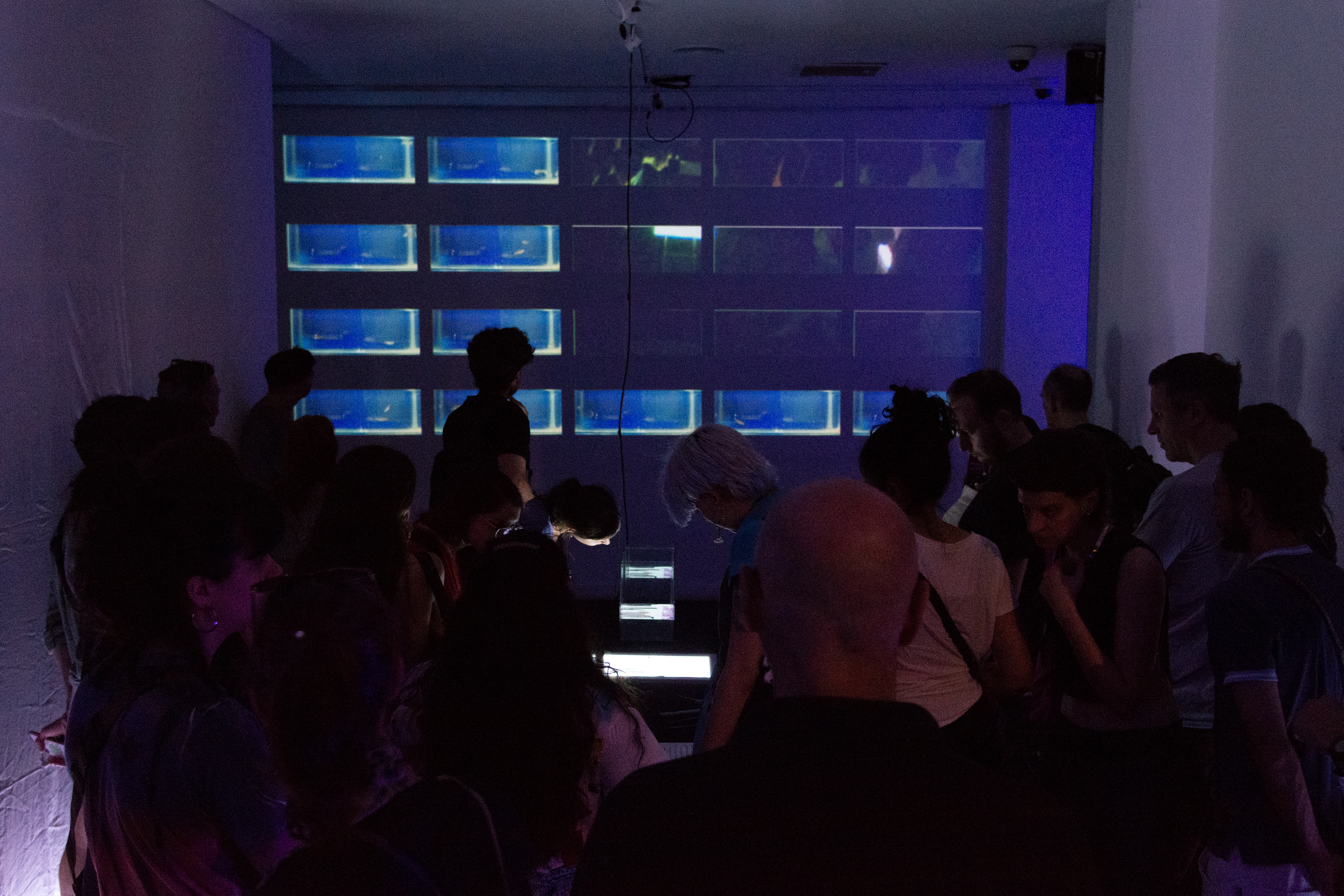 At times, visitors to this laboratory will find themselves immersed in the fish tanks, questioning the visitors' position as observers, perhaps being precisely themselves the ones being observed.